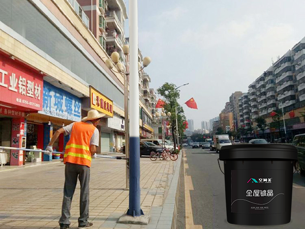 在處理好保護(hù)物的不干膠痕或清除灰塵后,在保護(hù)物表面分別滾涂底漆以及鍍晶膜,前后共兩遍工序不僅施工過(guò)程快、效率高,而且對(duì)施工技術(shù)要求不太高,一條街道市政清潔工作幾小時(shí)即可完成。